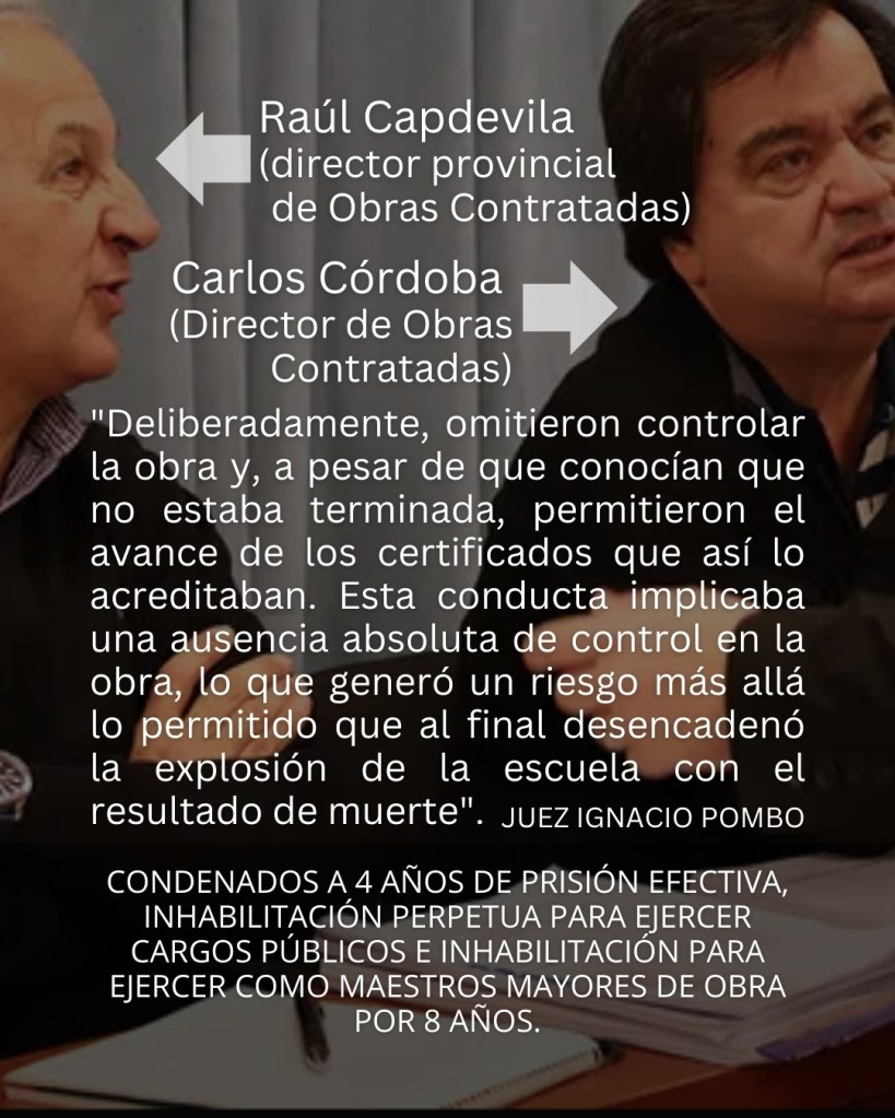 No se pueden dejar pasar detalles como la falsificación de documentos a la hora de presentar certificaciones, o el comentario desafortunado de Juan Manuel Coto, abogado del exdirector provincial de Obras Públicas, Raúl Capdevila: “A esta causa le sobran imputados y le falta chispa» intentando en su defensa culpar a una de las víctimas de la explosión