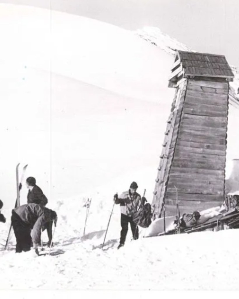 Antes de los medios de elevación, hubo mochilas cargadas de materiales y refugios levantados a pulso.