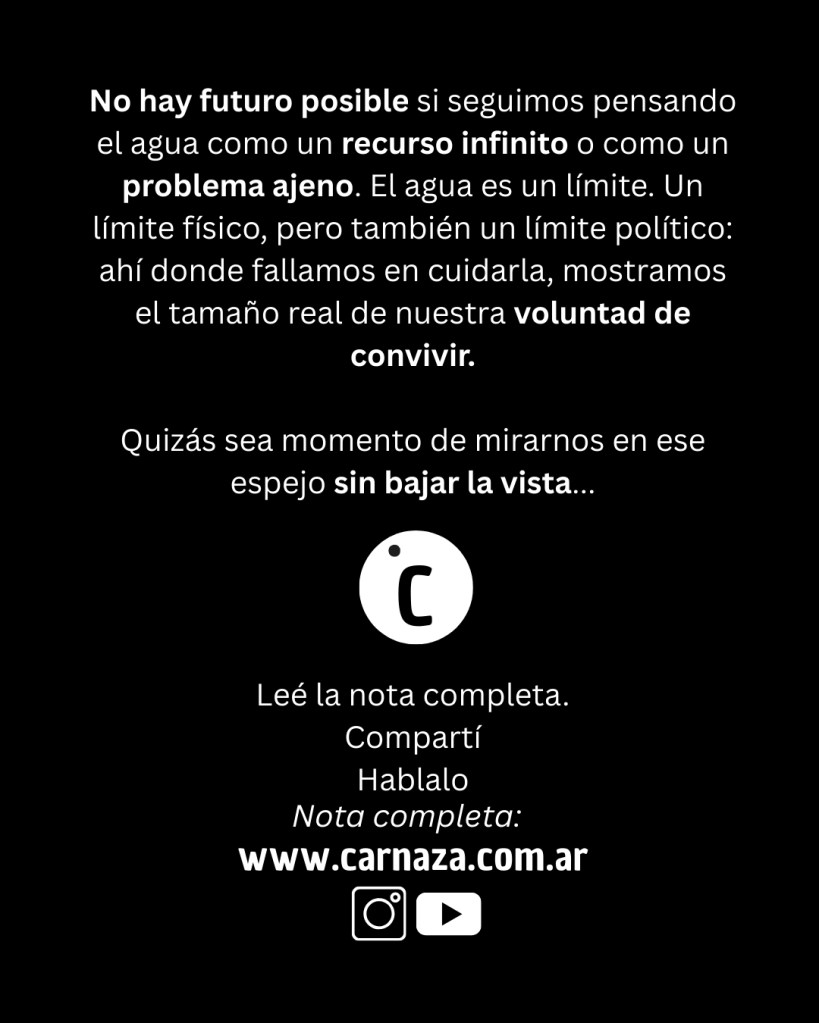 No hay futuro posible si seguimos pensando el agua como un recurso infinito o como un problema ajeno. El agua es un límite. Un límite físico, pero también un límite político: ahí donde fallamos en cuidarla, mostramos el tamaño real de nuestra voluntad de convivir.